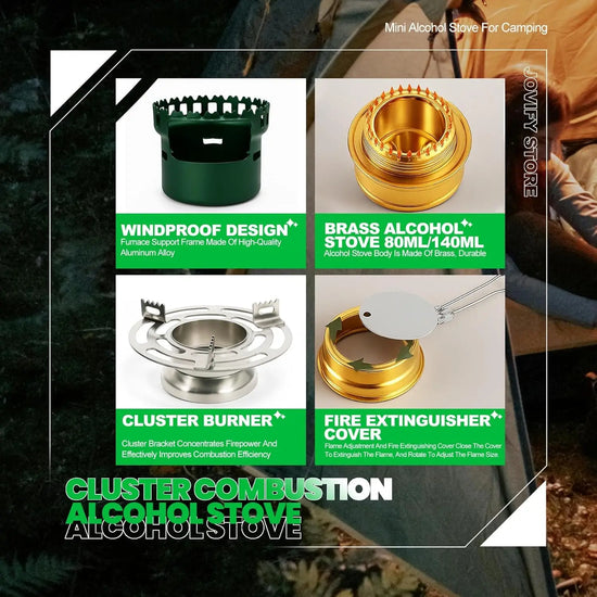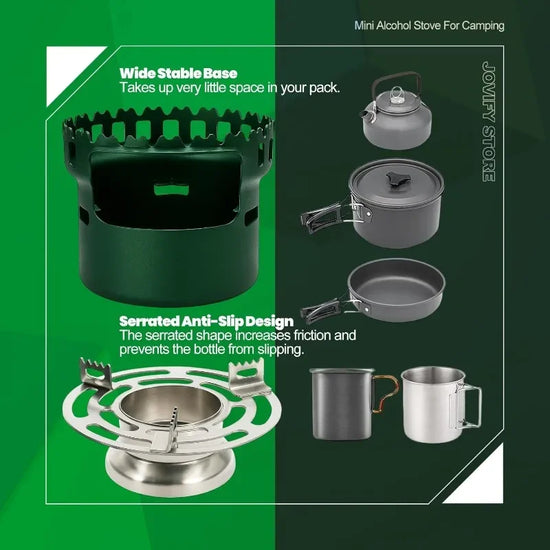 • Eco-Friendly: Embrace eco-conscious camping with our Alcohol Burner Stove, utilizing alcohol as a clean-burning heat source. Whether in the great outdoors or indoors, this stove is your sustainable solution. Alcohol, easily accessible anywhere, replaces petroleum-based fuels, ensuring a cleaner burn and a safer, more enjoyable cooking experience.